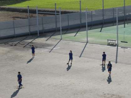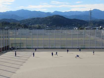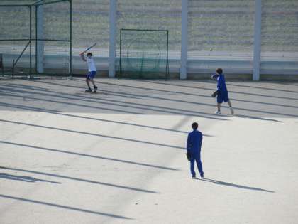 青空の下、広いグラウンドでのソフトボール競技は気持ちよさそうです。