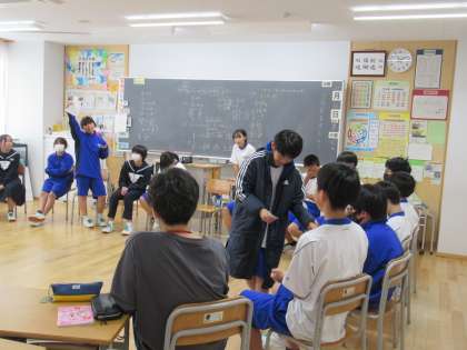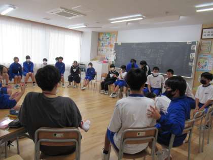 定番は、フルーツバスケット。次のゲームはなんだか複雑で難しそうです。担任の先生も一緒に輪に入り、活動しています。