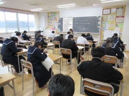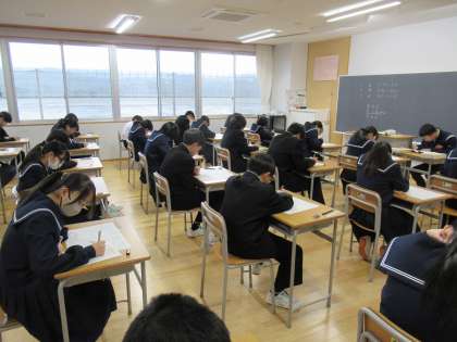 1年生は、英語、保健体育、社会のテストに臨みます。1限目は、リスニングテストからスタートです!