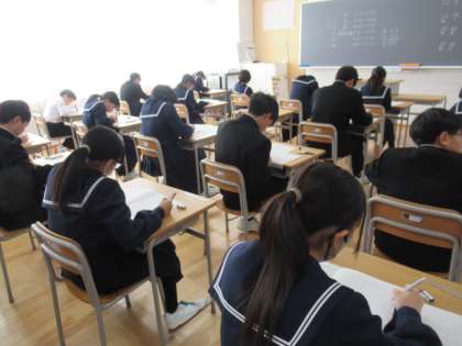 1年生は、国語、音楽、数学の順でテストに臨みます。