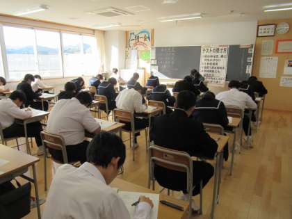 2年生は、社会、音楽、国語の順でテストに臨みます。