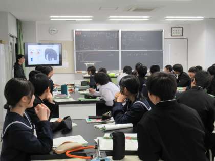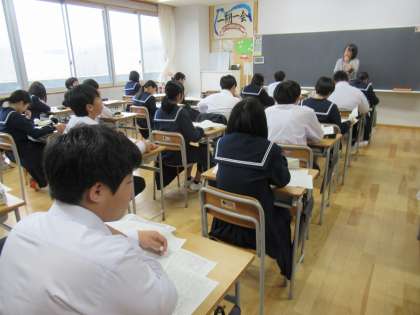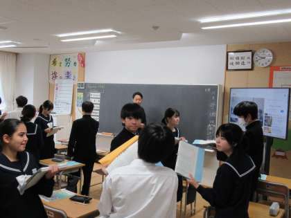 写真中は、国語の授業の様子です。期末考査の振り返り中です。