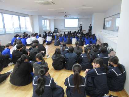 集会室にたくさんの生徒が集まりました。