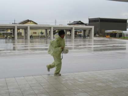 駐輪場で脱いでしまい、濡れながら生徒玄関までやって来る生徒もいます。