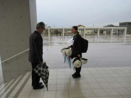 駐輪場に雨が吹き込むことも予想されるので、ヘルメットや雨具は生徒玄関まで持ってきましょう。忘れている生徒の分を持ってきてくれる生徒もいます。心配りをありがとう。