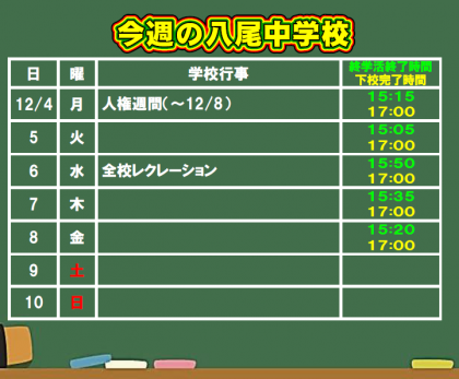 12月3日(日) 今週の八尾中学校