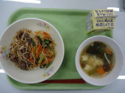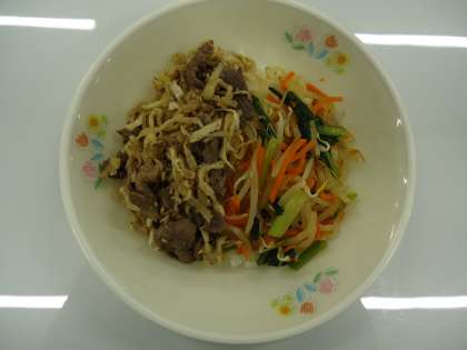 焼肉とナムルをご飯にのせ、混ぜご飯にして食べると美味しいですよ。