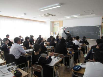 写真下は、理科の授業の様子です。天体分野に入りました。「流れ星みたことある?」という問いかけに多くの生徒が挙手しています。