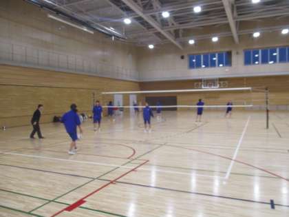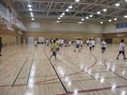 体育館では、バスケットボール部とバレーボール部が活動しています。