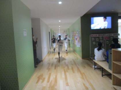 2F廊下を利用し、陸上競技部と野球部が活動しています。