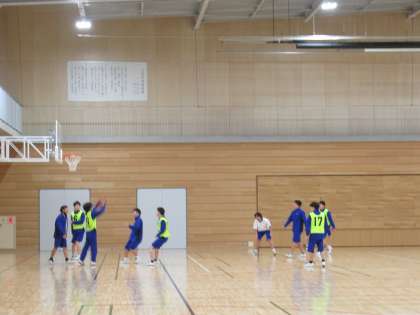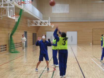 広い体育館は、ひときわ寒く感じますが、生徒は元気にバスケットボールに取り組んでいます。