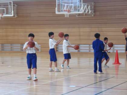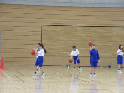 1年生のバスケットボール競技は、まずは基礎的な力を付けるためにボールに慣れる活動をしています。