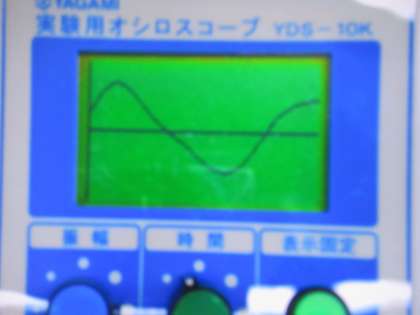 オシロスコープを使って、弱く叩いたときと強く叩いたときの波形を調べています。