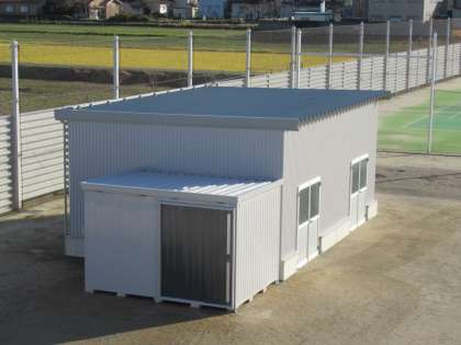 グラウンドの倉庫の隣に、新しい物置が設置されました。
