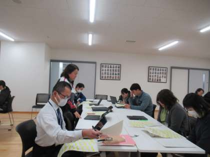 12月13日(水) 来年度に向けて 公開日 2023/12/13 更新日 2023/12/13 八尾中学校のページ 今日は、ノー部活動デー。 教職員は、職員会議、研修会を行いました。研修会では、3つのグループに分かれて、来年度の行事等について見直しを行い、意見を出し合いました。教職員全員で、「考え」、「動く」、まさしく「考動」(こうどう)です。 chromebookのスプレッドシートを活用して、意見を共有しながら話合いを行いました。