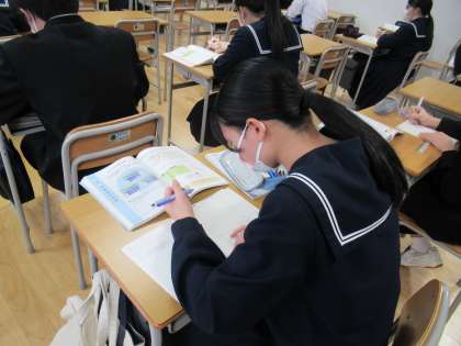 少人数授業で、一人一人の質問に答えながら学習を進めています。