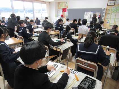 書き初め練習の様子です。楷書で書くのは難しいですね。