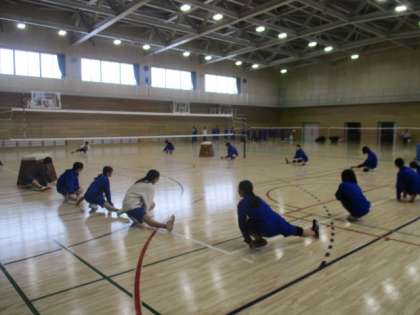 体育館では、卓球部、バレーボール部、バドミントン部が活動しています。