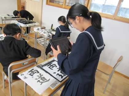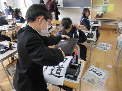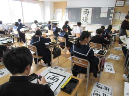 2文字ずつ書き、「文武両道」を完成させています。
