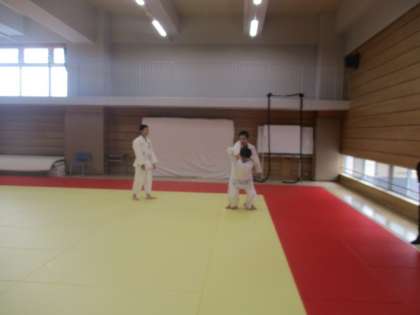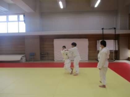 柔道部は背負い投げの練習をしています。投げる側も、受け身を取る側も技術が日々上達しています。
