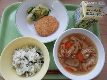 今日は、2学期最後の給食です。今日は、明日の冬至に因んで「冬至献立」です。