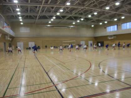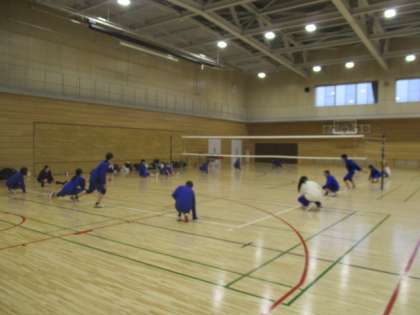 体育館では、バスケットボール部とバレーボール部が活動しています。