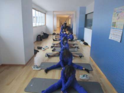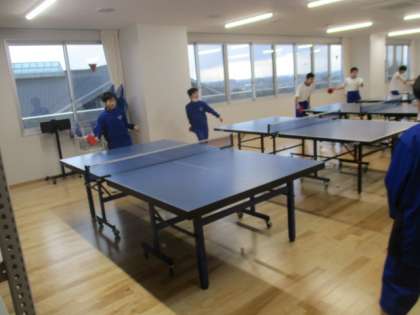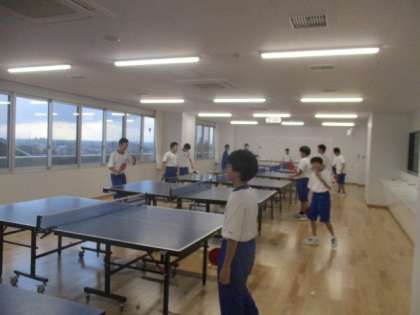 3階集会室では卓球部が、廊下ではバドミントン部が活動しています。