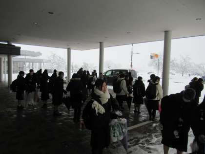 予定どおり、下校完了しましたが、八尾コミュニティセンター前や中で保護者の迎えを待つ生徒が多数います。