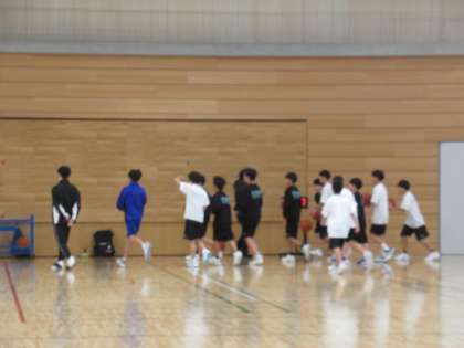体育館では、バスケットボール部が練習しています。