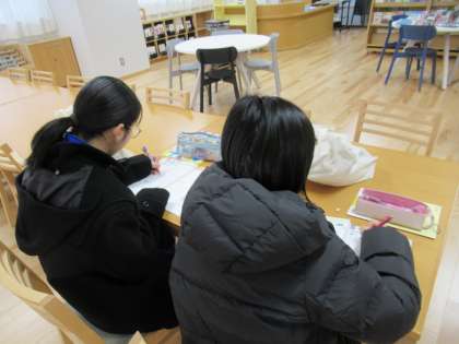 部活動が始まるまでの時間を活用して、図書室でYMC(やつお モーニング チャレンジ)をしている生徒がいます。