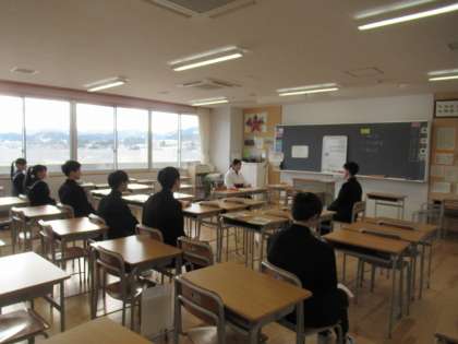 生徒同士で面接官と受検生役を交代しながら練習しているクラスもあれば、先生と面接している様子を他の生徒が見てアドバイスしているクラスもあります。