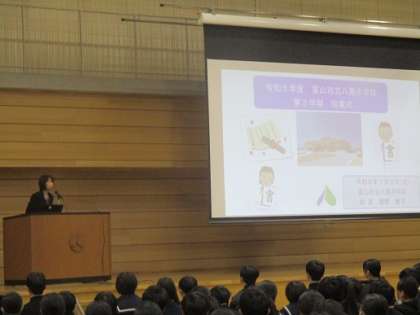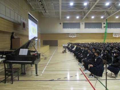 式辞では、校長先生が辰年は今まで準備してきたことが形になる年といわれていることに触れ、これまでの努力が実を結ぶよう、3学期も努力し続けてほしいと話されました。また、日頃の努力、訓練、信頼関係が日航機の事故で全員避難できたことにつながったことにも触れ、「奇跡」の背景にあるのは「日頃からの努力の積み重ねであること」「いつでもどこでもいつまでも」という今年度のキーワード「本物」は、この日頃の積み重ねであること」を話されました。
