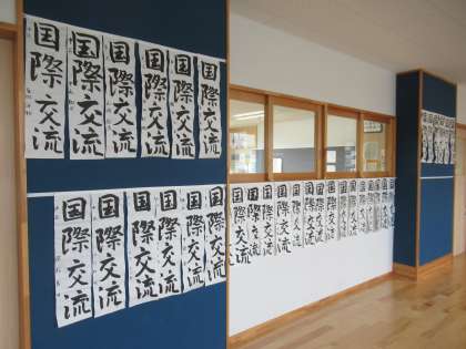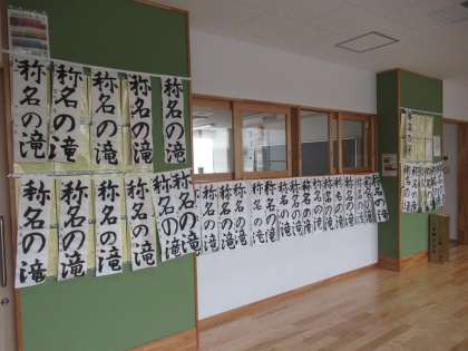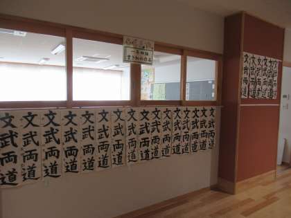 書き初め大会で書いた作品が各教室前廊下に掲示してあります。