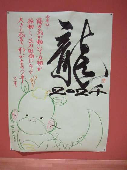 先生が書いた見事な「龍」の文字も掲示してあります。達筆!