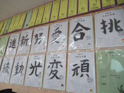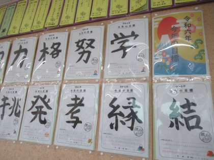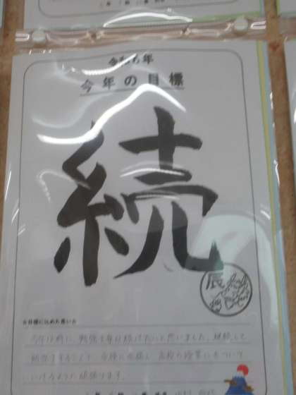 それぞれの思いがたっぷりこもった1字です。「挑」(挑戦)、「努」(努力)、「進」(前進)、、、等様々です。始業式で校長先生が3学期に望むこととして述べられた「続ける」ことを意識し、「続」という漢字を書いている生徒も多数いました。