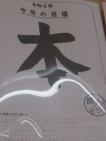 「本をたくさん読みたい」「本物を目指したい」「本気で頑張りたい」という思いを込めて、「本」という1字を書いた生徒もいました。1字に3つの思いを込めています。