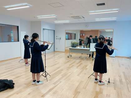 金管が会場に向かいました。続いてはフルートです。細かく丁寧に練習を積み重ねてきました。どの生徒も上達しています。