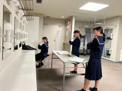 会場にはフルートが到着し、最後のチューニングを行なっています。がんばれ!八中フルート!!