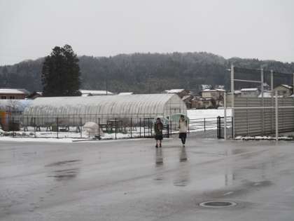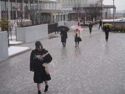 今朝は寒々とした天候です。 生徒は、元気に登校しています。