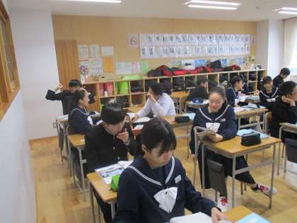 留守番電話のメッセージを聞いて、内容を読み取る課題に取り組んでいます。読み取ったことを、ペアで確認しています。