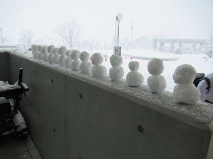 解錠前に、生徒玄関前の雪でつくったと思われるかわいい雪だるまが生徒を迎えています。