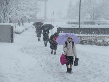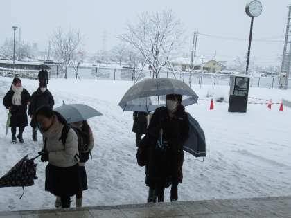 生徒は、足に力を入れながら、雪を踏みしめて登校して来ました。