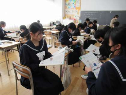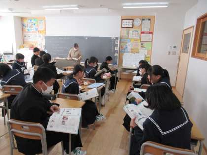 ペアで音読練習をしています。何度も何度も役割を交代しながら練習しています。暗記できるほど読み込めたかな。
