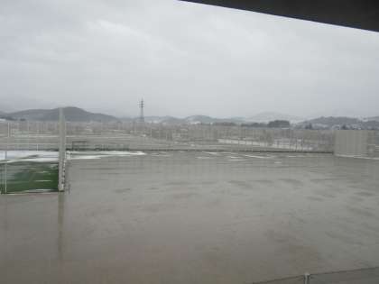 雨が一面真っ白だったグラウンドの雪を、あっという間に溶かしてしまいました。