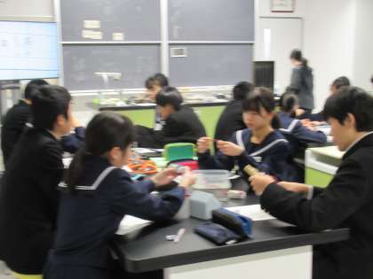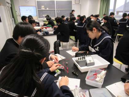 豆電球を使って電流の回路について学習しています。