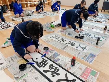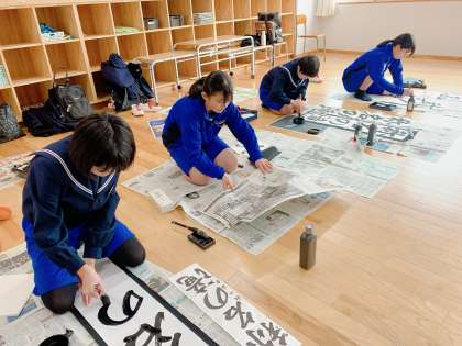 2月12日に行われる県書初大会に向けて、放課後に練習会を行っています。