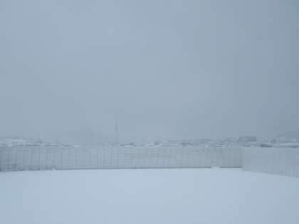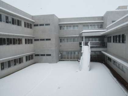 あっという間に雪景色、一面の雪。学びのニワ(中庭)も、八尾のニワ(前庭)も真っ白です。