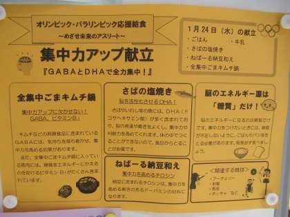 1月24日(水) 学校給食週間3日目 集中力アップ献立
