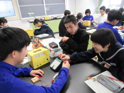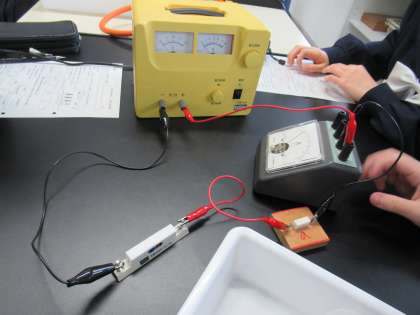 どのようにつなぐと、電圧を測定できるのか班で試行錯誤しているところです。