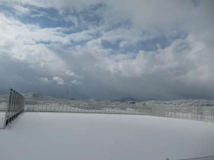 グラウンドは、一面銀世界です。たくさん積もりました。